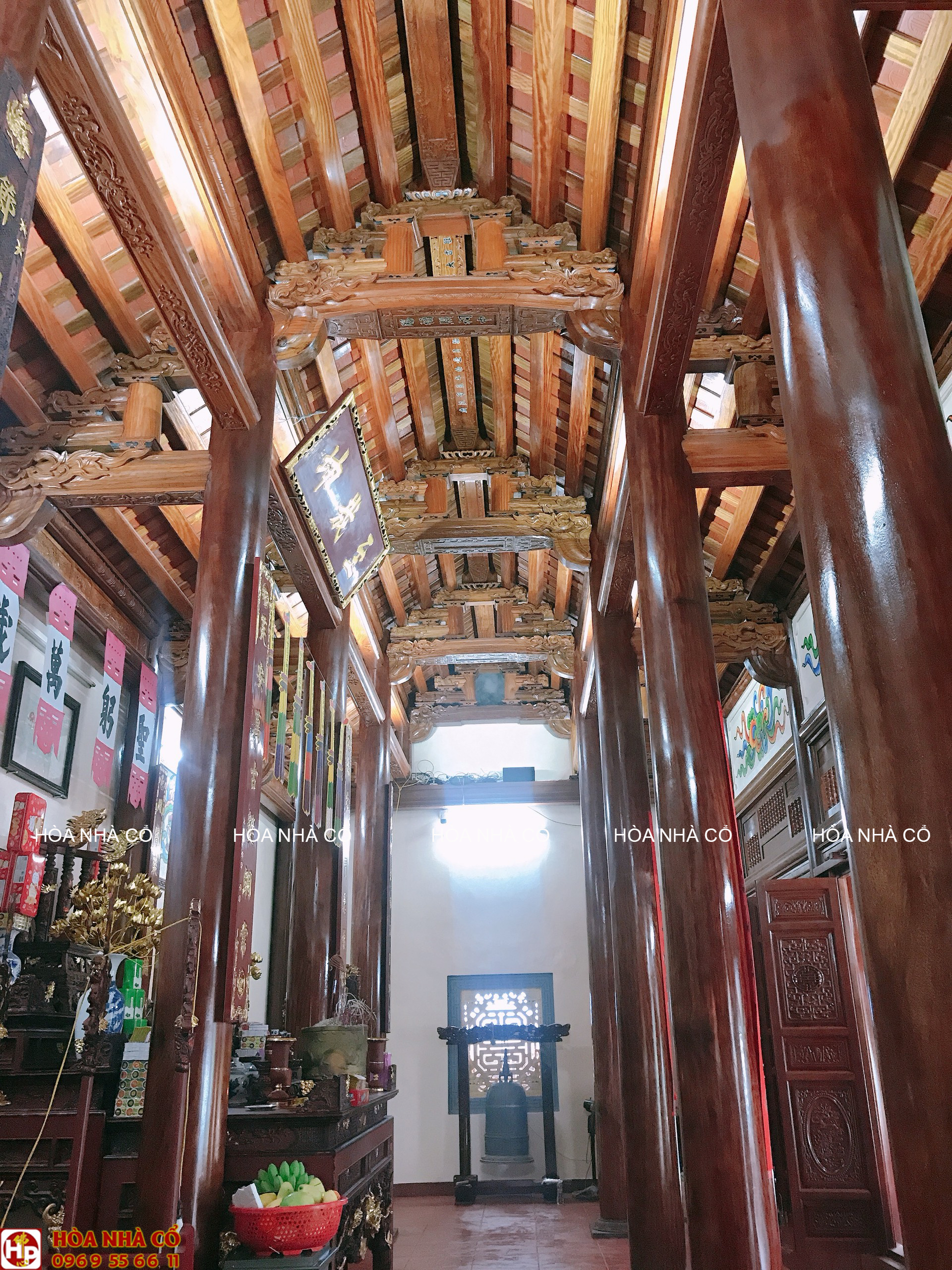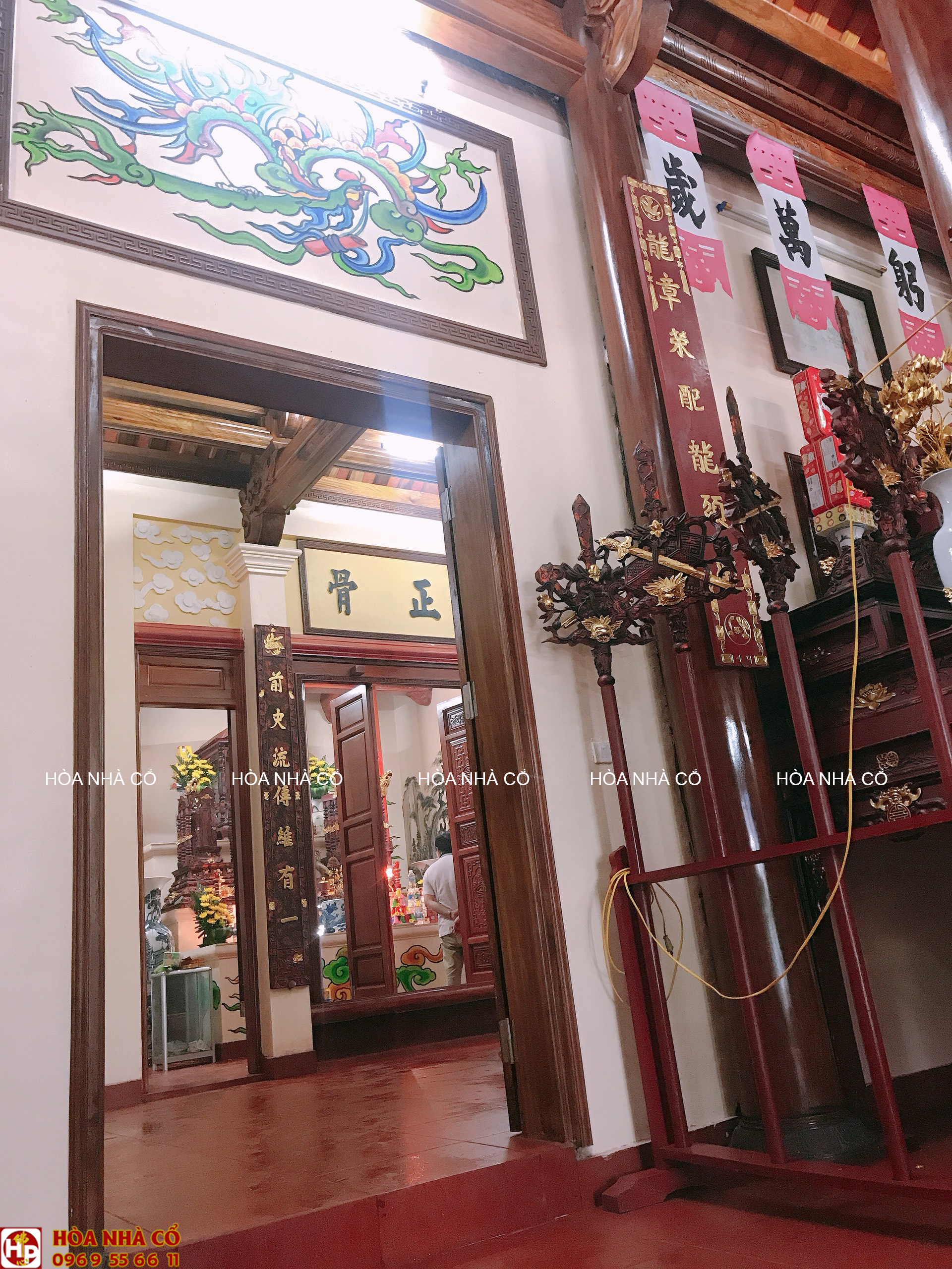 - Nhà 5 gian 2 buồng gói có hậu cung (gồm 2 cung là cung giữa và cung trong) là nơi thờ chính.