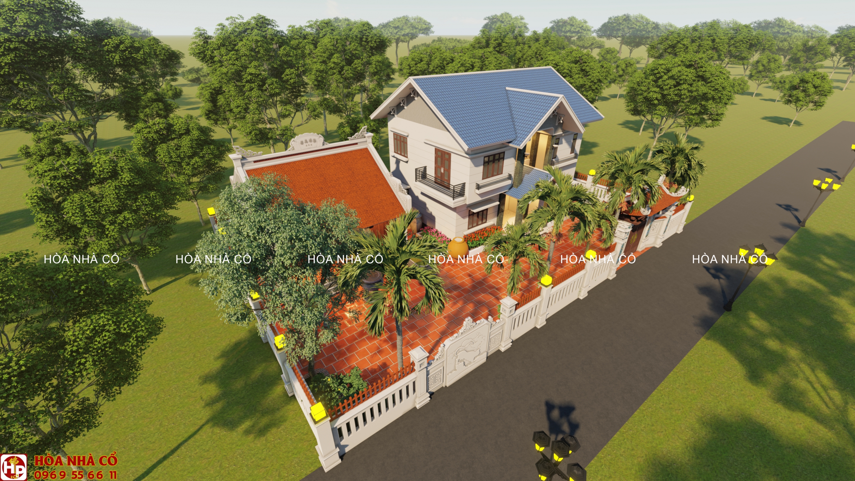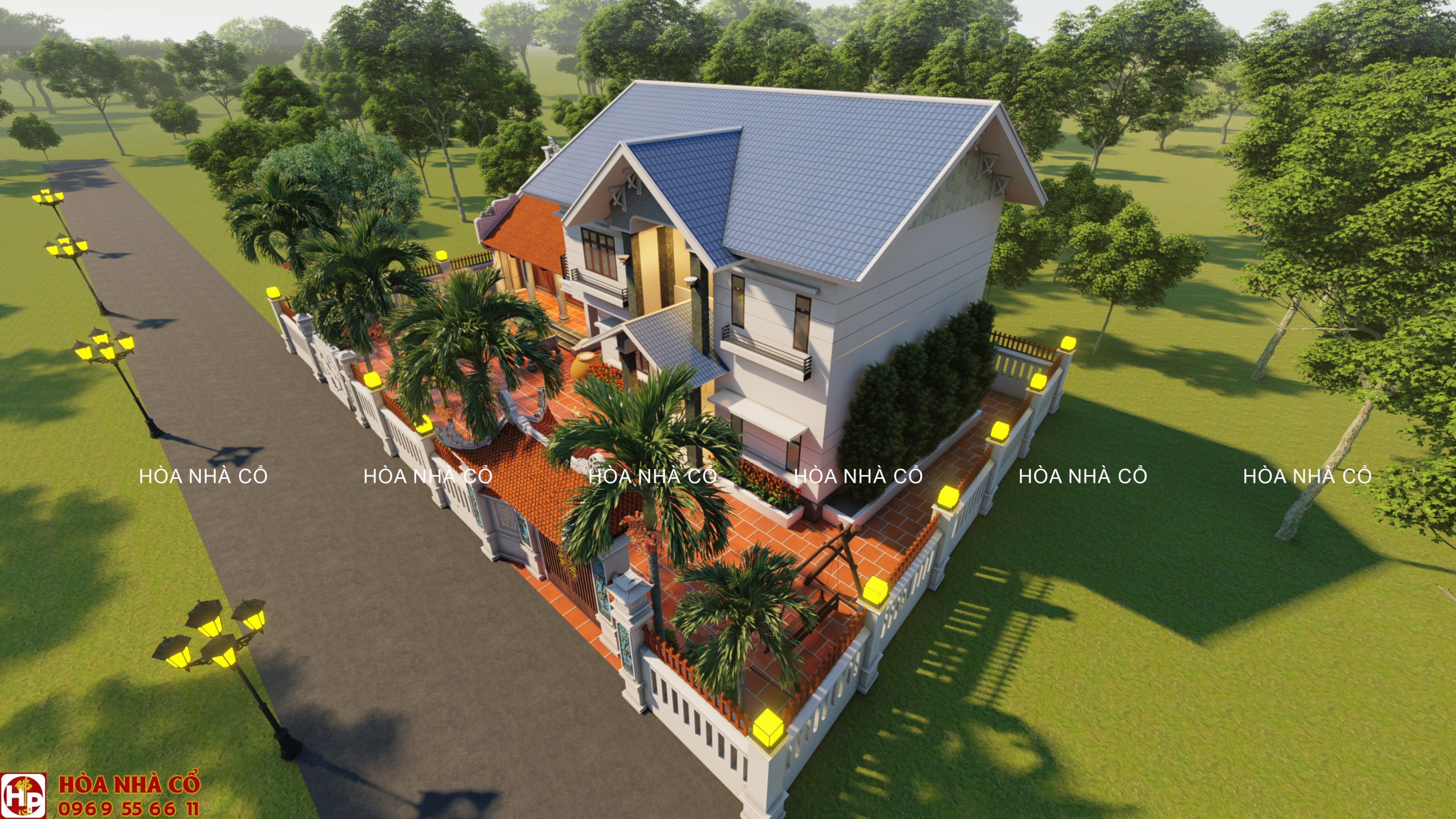 Mẫu thiết kế nhà 3 gian truyền thống kết hợp biệt thự sân vườn