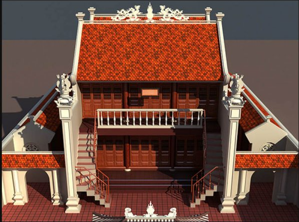 Ngoài ra để thêm phần cổ kính và giữ được nét kiến trúc truyền thống, phần nóc mái có thể đặt thêm con kìm nóc, giữa lối lên khi bước vào cửa chính có thiết kế 1 cuốn thư khắc bằng đá xanh…
